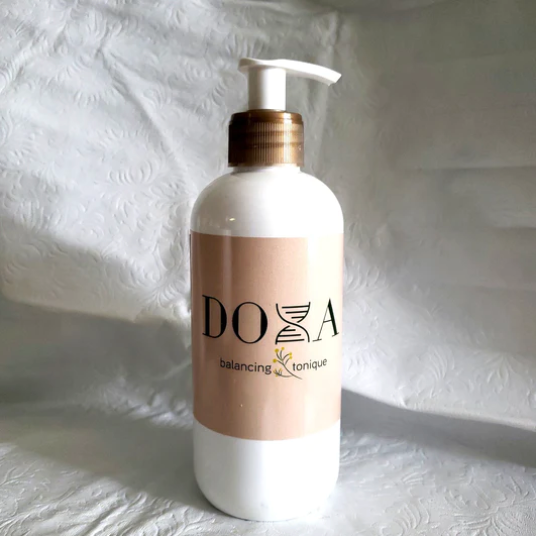 After cleansing comes restoration. Our Doxa Balancing Tonique, also known as “Liquid Heaven,” is food for hair, face, and body. The natural infusion of water, herbs, and vegetables provides essential ingredients that bring our largest organ back into balance.